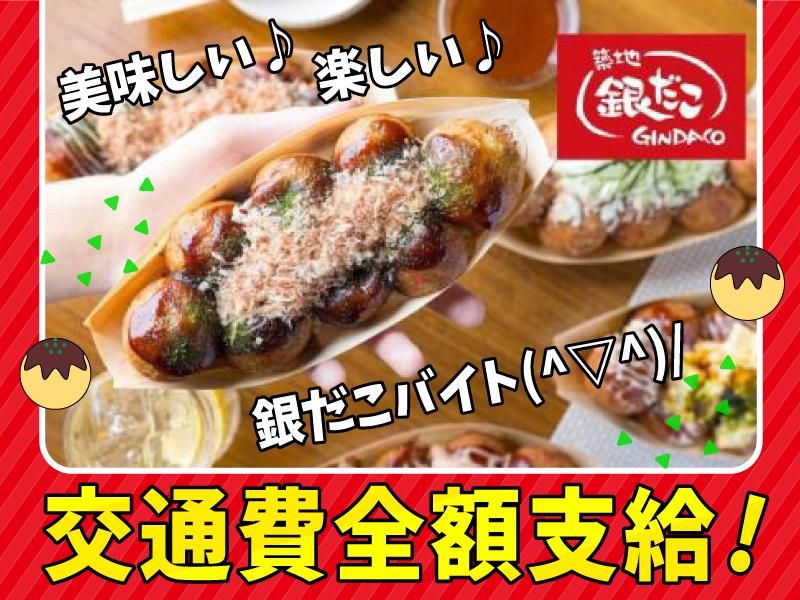職場環境 昼間は主婦パートさん、 夕方・夜は学生さんや フリーターさんが活躍中! スタッフの共通点は 「銀だこのたこ焼きが好き」 「人と話すことが好き」 「仲間思い」ということ! 経験は全く関係ないので、 ぜひ応募してみてくださいね! 喫煙所:喫煙所あり(屋外)