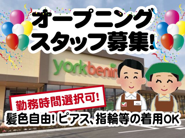 仕事内容 今春オープン予定の総合スーパー ヨークベニマル一箕町店(仮称) オープニングスタッフの募集です! オープンまでは近隣店舗での研修が ありますので、安心してオープン初日を 迎えることができます。 みんな未経験からスタート! 20代、30代、40代、50代 子育てがひと段落した主婦(夫)、 主婦パートさん、フリーターさん、 若い世代から中高年世代まで 幅広い層の方が活躍されております! ご家庭の都合などもスタッフ皆で 協力しながら調整しております 家庭との両立もできる職場です! (ベーカリー部門のおしごとについて) ヘルパースタッフ 食パン、調理パン、菓子パン、 ドーナツ、ピザなどの成形、焼き上げ、 袋詰め、値付け、陳列などをお願いします。 ・髪色自由!ピアス、指輪等の着用OK! 働くうえで染め直しの必要もありません! あなたらしいスタイルで働けます! ※安全・衛生面の観点で一定のルールあり。 ・加給制度あり 通常の時給にプラスされます! (曜日加給制度) 土曜日:時給+30円 日曜日・祝日:時給+100円 (時間帯加給制度) 7:00~8:00・17:00~19:00:時給+100円 19:00~22:00:時給+150円 ・昇給・賞与あり(アルバイトを除く) 頑張り次第で額も変わります! ・研修制度あり 未経験でもしっかりサポートいたします! ・休日/シフト制、週契約日数による 月末に翌月のシフトを決めます 学校行事や病院等、家庭の都合があれば 事前に申請可能です! ・マイカー/車通勤可 自転車やバイク、公共交通機関での通勤もOK! (応募方法について) WEB応募よりエントリーください 24時間受付中です WEB応募後は追って面接日をご案内いたします。 お電話でのお仕事内容や、 採用に関するお問い合わせもお気軽に! TEL.0120-889-409