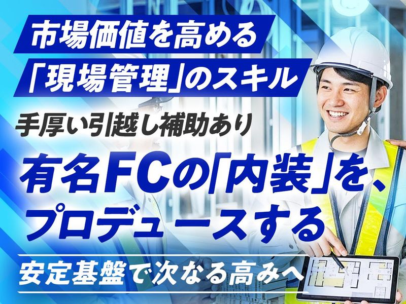 仕事内容 当社は、有名フランチャイズ(FC)店舗の新規出店やリフォーム工事を手がけています! 工事がスムーズに進むように現場をサポートするお仕事をお任せします♪ <主なお仕事> ☆BtoBがメインです ・工事現場のチェック・写真撮影 ・職人さんや関係者との打ち合わせ ・工事スケジュールや安全の確認 ・書類作成や役所への届け出(フォーマットあり) ・メール対応などの事務作業など <主な施工現場> ・新店舗の内装工事 ・その他リフォーム工事など <1日の流れ> 8:00 出勤 本日の作業打ち合わせ等 9:00 管理会社関係者さまへ挨拶 12:00 昼休憩 13:00 現場の進捗確認・役所への書類提出・書類作成など 16:30 現場作業完了確認及び工事完了の挨拶 17:00 退勤 ◆今までの経験を存分に活かせる! 当社では、現場ごとに大きな裁量を持って仕事を進めることができます◎ 「任される」経験を積みながら、責任あるポジションへ早期にステップアップ可能♪ 自分の裁量で現場を動かし、成果が目に見えるやりがいを実感できます! ◆高収入♪ 月給40万円からと高水準なので安定して稼ぐことができます◎ 頑張りはしっかり評価され、さらなる収入アップも目指せます。 家族を支えるため、将来を見据えた転職にもピッタリの環境です! ◆手に職をつけられる◎ 施工管理の仕事では、コミュニケーション能力、課題解決力、段取り力など、社会人として広く役立つスキルが数多く身につきます。 さまざまな建築現場を経験することで、建築に関する知識と実務スキルが自然と蓄積されていきます! ◆景気に左右されにくい、安定の建築業界! 私たちの主力事業である店舗の内装工事やリフォーム工事などは、今後も安定した成長が見込まれております◎ 腰を据えて長く働けるので、将来設計もしやすく、ご家族を持つ方にも安心していただける安定感があります♪