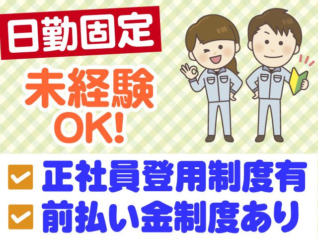 仕事内容 <男女スタッフ活躍中!> 配線の組立・加工スタッフ増員募集! 勤務地は、藤崎町の工場です。 ◎工場ワーク未経験OK ◎日勤固定で働きやすい ◎GW、夏季休暇、年末年始休暇あり ◎正社員登用制度あり ◎資格取得支援制度でキャリアアップ ◎入社祝い金5万円あり(規定有) <業務内容> 配線の組立・加工作業。 指示書を見ながら、配線のカットや圧着、 ネジ締め、組立を行います。 自分の作業台で、作業を行いますので、 自分のペースで進めることができます。 <ここが安心・嬉しいポイント> ・社員登用制度有 (当社実績30名が社員に登用されております) ※登用の際には本人の希望を伺います。 ・資格取得支援でスキルアップ (天井クレーン、玉掛け等の資格が取得できます) <こんな方におすすめ> ・長期安定して働きたいフリーターの方 ・地元で稼ぎたい方 ・手に職をつけたい方 ・日勤のフルタイムのお仕事をお探しの主婦(夫)の方 もちろん製造の経験がない方でも 研修制度が充実しておりますので、 安心して仕事がスタート可能です。 幅広い世代が働く弊社で 一緒にお仕事してみませんか。 就業開始日の相談や、 お仕事に関するご質問など、 お問合せも専任スタッフが 丁寧にお答え致します。 まずは、一度お気軽にご応募ください! 【問い合わせ先】 TEL:0172-28-3280 携帯:090-6689-6124