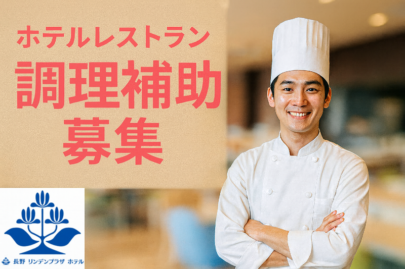 仕事内容 安心の研修でしっかりとお仕事を覚えられます◎ 長野リンデンプラザホテル|調理補助募集 社員登用あり 昇給あり 雇用形態:アルバイト 【主な業務内容】 ・専属シェフのサポート業務 調理など全般的に担当していただきます。 朝はビュッフェスタイルです。 あらかじめ決まったメニューをまとめて調理します。 【◇勤務例】 シフト制(休憩1時間) 希望があればお気軽にご相談ください。 【◇給与】 時給:1,070円~1,100円 ※経験・スキルによって決定/昇給あり/社員登用あり 深夜手当・残業手当あり 【◇社会保険】 各種社会保険完備(健康保険/厚生年金/雇用保険/労災保険) 【◇福利厚生】 昇給あり 制服貸与 社会保険あり 残業手当 深夜手当 交通費規定支給(月額支給上限 40,000円) ★試用期間:3ヶ月(条件は本採用と同一) 【サンフロンティアグループについて】 1999年に東証一部(現プライム)に上場後、安定した業績を重ね成長を続けてまいりました。 お客様目線の細やかなサービスで、「また来たい」と思わせるおもてなしの心は、国内外から高く評価されています。 お客様と仲間のために心から尽くす『利他』の心を軸に、今後も事業拡大、成長を続ける将来性のあるグループです。 【応募の流れ】 応募→書類選考→面接 およそ2週間 ☆面接当日にご体調がすぐれない場合は、ご無理をなさらずに面接日変更のご連絡をお願い致します。 ◎未経験の方でも、安心の研修制度があるためご安心ください。 助け合い仲間のために働く社風です。経験を問わず良い意見をどんどん賞賛し、推進する経営ポリシーがあるため、向上心があり、ホスピタリティ精神に溢れた従業員が多く活躍しています!