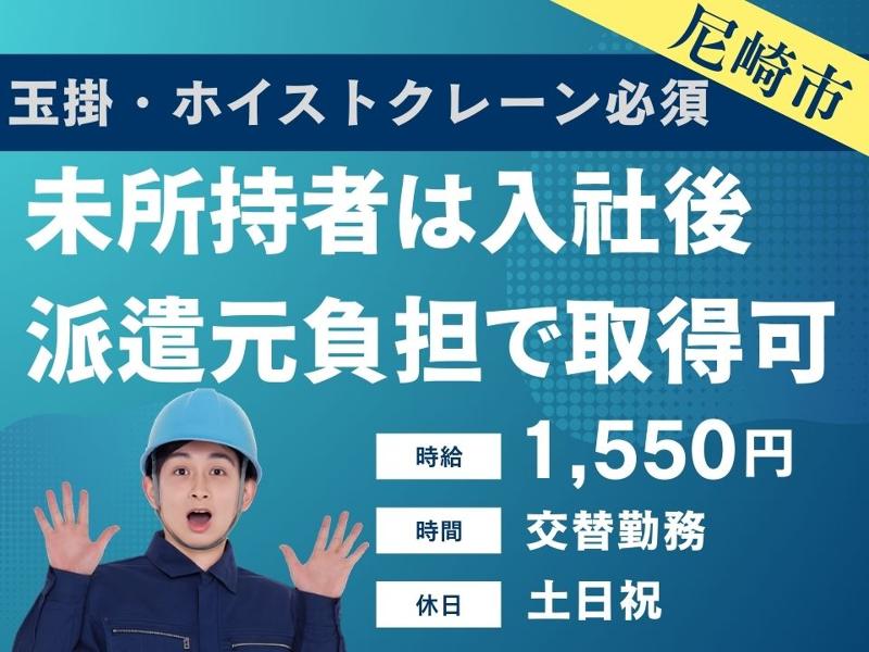 求める人材: 【応募資格】 【玉掛・ホイストクレーン必須】 未所持者は派遣元負担で取得 未経験OK 特別な知識・スキルは一切不要です。 未経験からスタートした方が半数以上 例えば、こんな前職でこんな仕事をしていた方が当社派遣スタッフとして、活躍しています。 ・サービス業で接客の経験がある方 ・軽作業スタッフとして働かれていた方 当社では他にも以下のような方が働いている職場もございます。 工場や製造(組立・機械加工・検査・梱包・出荷・ピッキング、仕分け、フォークリフト)の仕事を初めて経験される方 とにかく稼ぎたい方 プライベートを充実させたい(土日祝休み希望・GW・夏季・年末年始の長期休暇希望)方 寮に住み込みで働きたい方 ハローワークや一般求人誌には掲載されていないお仕事情報もたくさんありますので、 まずはお気軽にお問合せ下さい。