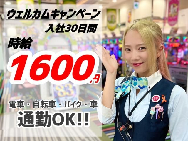 【中番お昼出社シフト】 朝苦手な方必見/入社後30日間は時給1600円/アスワン幕張店/車通勤OK! 【面接時の履歴書不要】朝起きるのが苦手な方や遅すぎる退勤時間がちょっと・・・という方にはピッタリ!12時~のお仕事です! ●ゆっくり楽々出勤が魅力!● お昼12時からの中番勤務です。朝が苦手な方にはピッタリ!更には朝の渋滞や通勤ラッシュも回避できる! ●給与前払い制度(稼働分・規定あり)● 急な出費の際に、働いた分の一部を受け取れる「前払い制度」も利用可能! ●シフトについて● シフトサイクル・・・2週間 シフト提出・・・シフト開始日の1週間前 ●約8割の方が業界未経験で入店● 約8割の方がパチンコ業界未経験で入店されアルバイトを始めています。そんな方々も今では頼もしいスタッフさんです。出来る限り不安を取り除くために初日から10日目まで先輩スタッフが常に横に付いて2名でお仕事を進めていきます。 11日目から1人デビュー。とは言いつつも、困った時はスタッフ同士でやり取りできる「インカム」で呼んで頂ければ直ぐに駆けつけます! ●Q:ネイルは大丈夫ですか?● サービスに支障が出なければ、デザイン長さは自由でOKです! ●Q:髪色は自由ですか?● 笑顔で明るく元気の良い対応をして頂ければ自由でOKです! ●ここ大事● 【笑顔で挨拶!明るく元気よく!】まず欠かせないのが『挨拶』です。お客様へはもちろんですが、スタッフ同士の挨拶もしっかりと行う事を大事にしています。 ●接客がメイン● パチンコを遊びに来るお客様へ接客サービスを提供していきます。お客様に快適な環境と時間を提供できるように、接客サービスについてはしっかりと行っていきます。その為のフォローは惜しみません!