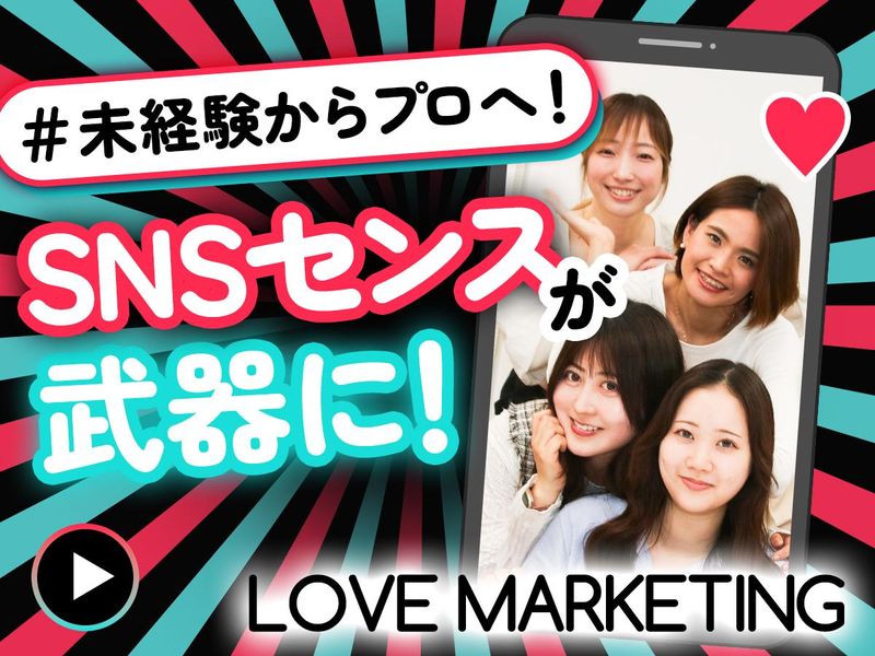 求めている人材 ✨未経験歓迎 ✨学歴不問 ✨高卒・第二新卒・ブランクOK ✨正社員/社会人デビューOK ✨20代~30代活躍中 【応募条件】 ■基本的なPC操作ができる方 ■SNSに興味がある方(見るだけでもOK!) 【こんな方を歓迎】 ◎アイデアを出すのが好きな方 ◎新しいものにワクワクできる方 ◎トレンドに敏感な方 ◎チームで協力して働きたい方 ◎人と話すことが好きな方 「未経験からマーケティングに挑戦したい」 「人に影響を与えられる仕事がしたい」 「成長を実感しながら自分の市場価値を上げたい」 ――そんな想いをお持ちの方にはピッタリです! カジュアル面談、Web面接もご相談いただければ対応可能です。 わからないことがあれば、お気軽にご質問ください♪ ✅先輩たちの前職は・・・ ―――――――――――――――――――― SNS運用担当/SNSマーケター/Webマーケター/広報・PR/販促企画/コンテンツ企画/Webライター/動画編集者/デザイナー(バナー・SNS画像)/営業(提案型)からの転職者の方もいれば、営業、一般事務、介護士、飲食スタッフ、工場勤務、フィットネスクラブ、エステティシャン、販売スタッフ、アパレル店員、保育士、ドライバー、コールセンタースタッフ、美容部員…など、まったく異なる業種から転職している方も活躍しています! 「WEBの知識を活かしたい」と入社したメンバーも多数◎