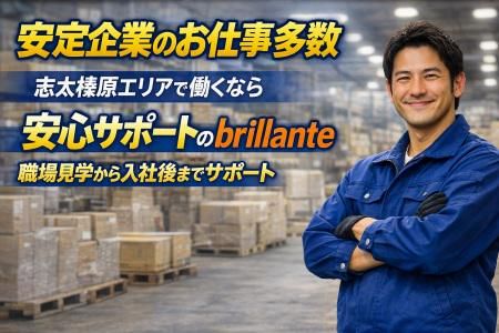 選考プロセス 応募 → 面接 → 職場見学 → 就業開始 ▼ ご応募はこちら 電話応募:☎054-625-8838 WEB応募:24時間受付中(簡単入力) ・職場見学は担当者が同行 ・職場見学後に判断OK ・入社手続きもサポート ・入社後の相談も対応 ※面接日・入社時期は相談可能です ※「話だけ聞きたい」でもOKです ―――――――――――――――――― ■当社について(株式会社brillante) 静岡県藤枝市を拠点に、労働者派遣 有料職業紹介を行っている会社です。 志太榛原エリアを中心に、 倉庫内作業やフォークリフト作業など、 現場系の仕事を多数取り扱っています。 当社代表が別途運営する物流会社の ネットワークを活かし、 誰もが知っているような大手企業・ 安定企業への配属実績も多数。 条件面や働きやすさにもこだわった 職場をご紹介できる点が強みです。 また、派遣が初めての方でも 安心して働けるよう、 職場見学から入社後まで 担当者がしっかりサポートします。 ・職場見学は担当者が同行 ・入社手続きも一緒に対応 ・就業後の相談も随時フォロー 事前に職場を見てから判断できるため、 納得した上でスタートできます。 志太榛原エリアで製造・倉庫内作業や フォークリフト作業をお探しの方は、 ぜひ当社にお任せください! ――――――――――――――――――