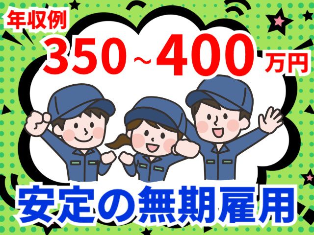 未経験OK/安定の無期雇用/4勤2休/年収例350万円~400万円/昇給・賞与有/退職金制度有