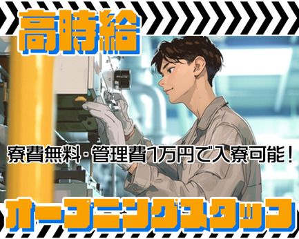 仕事内容 仕事内容 日用品などのプラスチック製品チューブ成形機マシンのオペレート業務 軽量製品の材料をセット ポチっとボタンを押す まずは梱包作業から慣れていただくので 工場初心者さんもご安心ください <具体的には> ・先ずは梱包作業から習得 ・徐々にマシンの操作作業 ・品質の管理 ・資材の準備 ・材料の投入、準備 等 リーダーになると上記作業以外の 保全活動なども行っていただくので 資格を取得してお給料がグンっとUP! ◎資格取得支援制度をご用意してます◎ 45歳の男性スタッフも活躍中! 静かな職場でのモクモク作業になるので 「集中できるからあっという間に1日が過ぎる」 と、作業のしやすさも人気の1つ! ・経験・資格一切不問! 簡単なお仕事なので未経験スタートでも即戦力になれます! 急募!積極採用中! おすすめポイント! ・交通費支給! ・資格不問! ・寮完備! ・赴任旅費 ・自宅からの通勤の方は交通費以外に手当付与! ・家族寮、カップル寮完備 こんな方におススメです! ・オープニングスタッフとして働きたい方 ・未経験スタートOKな仕事を探している方 ・仕事も住まいも一緒に見つけたい方 ・高収入で安定して稼ぎたい方 ・入社前入寮可能!早く家を確保したい方! ここがポイント 高時給でしっかり稼げますよ コミュ力いらずのコツコツもくもくの作業で高収入! 工場から近い寮完備!しかも寮費無料(管理費1万円)! すぐ入寮可能ですので、 お気軽にお問合せください!