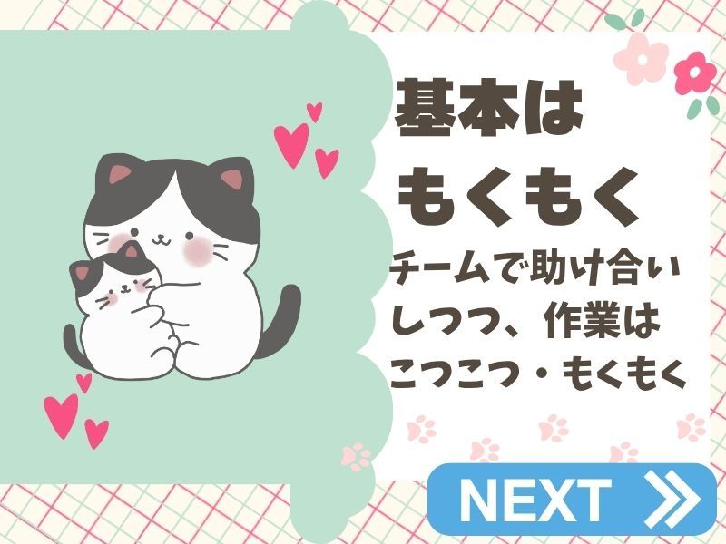 【親切サポート充実◎】はじめてでも安心感しっかり/落ち着いて進めやすい座り作業中心♪土日祝休みで続けやすさも◎