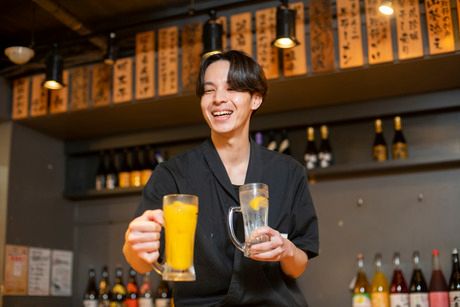 仕事内容 【ホールスタッフのお仕事】 ・席へのご案内 ・注文取り ・料理運び など。 まずは明るい挨拶ができればOK! 他のスタッフと協力しながら、 お客様にとって居心地の良い空間を 一緒に作っていきましょう。 【未経験でも安心のワケとは?】 先輩達の多くが未経験スタート! 初めてで不安...な気持ちがよ~くわかります。 だから、 挨拶の基本~メニューまで 優しく丁寧に指導するのはもちろん、 お仕事中も先輩スタッフが近くにいて、 困った時はすぐフォローします! 【九州熱中屋】 「もつ鍋」「鉄鍋餃子」「薩摩揚げ」など 皆に愛される九州郷土料理をご用意。 九州各地の美味しい郷土料理を集めた 活気ある大衆酒場です。