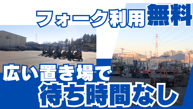 職場環境 資材置き場は広く、地面はアスファルト。 フォークリフト4台完備で同時積み込みが可能です。 待ち時間が発生しにくく、作業前後のストレスを感じにくい環境です。 喫煙所:なし(敷地内全て禁煙)