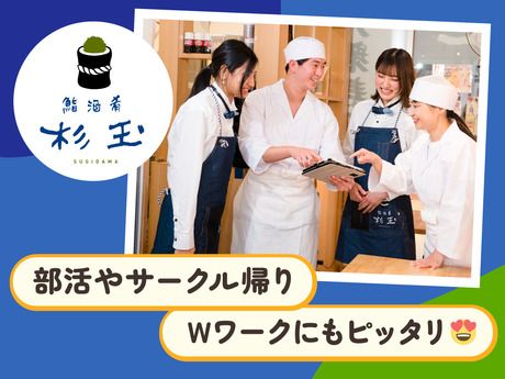 仕事内容 【仕事内容】閉店の準備やキッチン業務 閉店時間に近づくと、翌日に向けた準備(清掃・片づけ・洗い物・食材の仕込みなど)がメイン。時間帯によって調理補助や盛り付けなどもお任せします。料理の経験は全くなしでOK!1つずつ作れるメニューを増やしていきましょう!杉玉には定番のお寿司メニューはもちろん「飲めるサーモン」や「赤海老 他人の子持ち」などなど、味だけではなく見た目やネーミングにもこだわったユニークメニューが多数!自分もお客さまも楽しい気持ちになれるメニューが揃っています。※店舗の状況によっては、ホール業務をお任せする場合もあります <未経験の方OK> 特別な技術は必要なし。簡単な盛り付けや洗浄など、コツコツ・モクモクと取り組んでいただければ大丈夫です!ささいな事でも気軽に質問できる先輩スタッフがいますので、安心してスタートできます♪ <夜間からサクッと短時間> 夜間アルバイト大募集!夜遅い時間に少しなら働けそうな方、終電くらいまで働きたい方、深夜アルバイトを探しているという方にもピッタリ!シフトは夜間からラストまでの短時間勤務(1日4h以内)で、22時以降は時給25%アップ◎勤務日数は週2日~OKでシフト相談可能!ライフスタイルに合わせて働きやすいのが特徴です! 【自分に合った働き方が見つかる】 授業や部活、テスト期間に合わせて勤務したり。 家事・育児の合間に短時間で程よく働いたり。 週5日レギュラー勤務で、職場のみんなを引っ張ったり。 留学生が初めてのバイト先として選んでくれたり。 お店は様々なスタッフのおかげで成り立っています。 あなたはどんな働き方をしたいですか? 私たちのお店では年齢・経験・性別関係なく働きやすいと感じていただける 環境を整えています。 様々なスタッフが働くお店でたくさんの出会いに触れながら、一緒に働きましょう! まずは希望の働き方や不安なことがあれば気軽に相談してください。 【ココが嬉しい】お得な食事補助あり 勤務日には食事補助として1品300円でお店のメニューが食べられる!多くのスタッフから人気の海鮮丼、刺身定食、天丼など…バリエーション豊かな豪華メニューをリーズナブルな価格で楽しむことができちゃいます(日の仕入れ状況などにより異なる)♪ぜひ勤務日の楽しみのひとつにしてください! 【私たちについて】いま注目の大衆寿司居酒屋 杉玉は、スシローグループが展開している注目のお店。「食べる前から楽しくなれる」をコンセプトにした、大衆寿司居酒屋です。『飲めるサーモン』『極み寿司』など、味はもちろんSNS映えも意識した遊び心満載のメニューが充実!白シャツ×蝶ネクタイ×デニムエプロンのオシャレな制服など、他にも個性あふれる特徴が目白押しなお店です。 【私服OK】お気軽に面接へお越しください♪ ・面接時履歴書の持参不要 ・年齢、経験、もちろん不問!応募者全員面接中! ・お友達と一緒に応募OK(面接は、店舗によっては別になる可能性もあり) ・もちろん面接は私服でOK ・いつでもどこでも受けられる!録画面接も実施中 ■応募後の流れ↓ まずは「応募する」ボタンより気軽にご応募ください! ご応募後は応募受付センターよりメールにてご連絡いたします。 希望面接日の設定と対面・録画面接の選択をお願いします★ ■面接当日の流れ(対面面接の場合)↓ (1)応募した店舗までお越しください。スタッフがご案内します! (2)タブレットをお渡ししますので、希望の働き方や必要事項などの入力をお願いします。 (3)入力が終われば担当者が参ります。難しい質問はありませんので安心ください。 (4)長くても30分程で終了♪採用の場合に限り、7日以内に店舗よりご連絡いたします! ■面接当日の流れ(録画面接の場合)↓ (1)応募受付センターよりお送りしたメールにて録画面接を選択ください。 (2)録画面接用のURLをメールにてお送りさせていただきます。 (3)ログインの上、通勤とシフトに関する簡単な質問など自己紹介動画を撮影ください。 (4)所要時間は15分ほど♪採用の場合に限り、7日以内に店舗よりご連絡いたします! ※不採用の場合は連絡いたしません。ご了承ください。 皆さんと一緒に働ける日を楽しみにしています! もしもわからないことや、確認したいことがあれば応募受付センター(0570-006-628)までお気軽にご連絡ください。 ※【電話受付】10:00~19:00