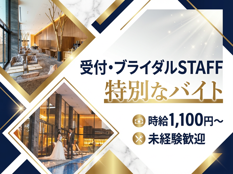 仕事内容 ✨海辺の上質リゾートで“人生最高の1日”を支える特別な仕事⭐ 花嫁さまの一番そばに寄り添うアテンド募集⏩ 週1日~OK/未経験歓迎/時給1,100円~✅ あなたの役割は―― 花嫁さまが“安心して最高の1日を迎えられるよう支えること” ⭐挙式前 ・ドレスの裾/ベール調整 ・ブーケ受け渡し ・控室でのサポート ⭐挙式中 ・入場タイミングでのドレス整え ・指輪交換時の立ち位置補助 ・写真映えする姿勢サポート ⭐披露宴サポート ・会場への誘導 ・移動時のドレス補助 ・ヘアメイクチェック ✅受付・誘導業務もあり ・ゲスト受付 ・ロビー案内 ・クローク誘導 接客+ブライダル補助の“いいとこ取りポジション”です✨ ⭐ここがポイント ① 未経験9割スタート 先輩が横につきます。 「ドレス触ったことない」→全然OK。 ② 週1日OK 土曜だけ、日曜だけでも大丈夫。 テスト週は休みも可。 ③ 自然と“上品”になれる 姿勢・言葉遣い・立ち振る舞いが身につく。 就活にも有利。