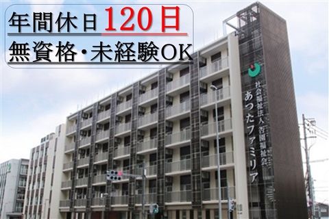 特別養護老人ホームあつたファミリア 求人概要 特別養護老人ホームあつたファミリア:介護職/正職員 無資格・未経験OK!賞与3ヶ月実績☆年間休日120日!月収24万4000円~月収34万4000円が可能◎他にも諸手当や福利厚生が充実!【名古屋市熱田区、六番町駅、ユニット型特養、介護スタッフ、正職員】 職種 介護職 所在地 〒456-0058 愛知県名古屋市熱田区六番1丁目1番5号 給与 月収24万4000円~34万4000円 ※上記は夜勤4回(1回7000円)の場合の月収例です。 月給21万6000円~31万6000円+夜勤手当(1回7000円×4回) ※経験・能力により異なります。 ※月給には処遇改善手当5万円~6万円を含みます。 ※別途、住宅手当や扶養手当などあります。 求人詳細 無資格・未経験OK!賞与3ヶ月実績☆年間休日120日!月収24万4000円~月収34万4000円が可能◎他にも諸手当や福利厚生が充実!【名古屋市熱田区、六番町駅、ユニット型特養、介護スタッフ、正職員】 2022年に新規OPENした、定員100名のユニット型特別養護老人ホームで介護スタッフを募集中◎お気軽にお問い合わせください★ご質問・職場見学からでもOKです! 職種 介護職 仕事内容・PR <仕事内容> ユニット型特別養護老人ホームでの介護業務全般をお任せします。 経験や資格は問いません. ◎看護師や他の職種と連携を取りながら、入居者さまが安心して生活できるようにサポートしています。 ◎施設的な部分を少しでも減らして、家庭に近い当たり前の生活を目指しています。 ◎夜勤勤務もありますが回数は相談可能です!夜勤体制は、看護師1名・介護職5名です。 ※1日の流れ(例) 朝食の提供 ・ 片付け ティータイム 歯磨き トイレのご案内 ・ 下着交換 昼食 ~休憩~ 掃除やシーツ交換(お風呂) おやつの準備・提供 トイレ案内 ・ 下着交換 記録 <杏園会グループについて> 熱田区・港区を中心に病院、介護老人保健施設、特別養護老人ホーム、通所リハビリ、デイサービス等を運営。 予防医療からリハビリ、介護までを一貫して提供し、地域に根ざした医療介護サービスを展開しています。 多職種との連携を通してスキルアップと地域貢献を両立できる環境です。 ※認知症介護基礎研修未受講、かつ、受講免除対象外の方は入職後1年以内の受講が必須となります。 雇い入れ後の業務内容の変更の範囲および就業場所の変更範囲の詳細は面談時にお伝えします。 雇用形態 正職員 契約期間 雇用期間の定めなし