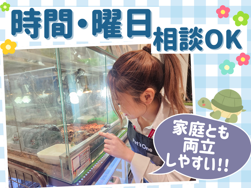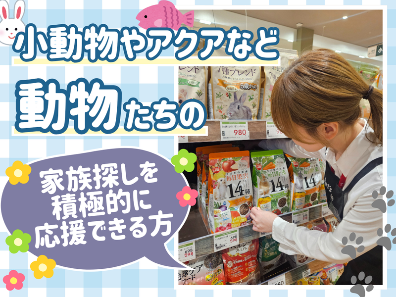 仕事内容 **可愛い子たちに囲まれて働く毎日** \ペットショップ販売スタッフ募集!/ ⏩大切な家族との出会いをプロデュースする販売員へ 接客や販売の経験を活かして、もっと特別な瞬間に立ち会いませんか? 「お客様の人生に寄り添う仕事がしたい」 「責任を持って、最高の提案をしたい」 その想い、とても価値のあることです。 ✅ 単純な商品販売ではなく、深い接客がしたい ✅ お客様の喜ぶ顔を直接見られる仕事をしたい ✅ 自分の提案力・コミュニケーション力を活かしたい ✅ 責任感を持って取り組める仕事を探している そんなあなたの想いを、私たちは大切にします。 <具体的なお仕事内容> ✨ペット販売と接客 小動物・観賞魚の販売 ・お客様のライフスタイルをヒアリング(住環境、家族構成、飼育経験など) ・ペットの性格や特徴をお客様に分かりやすく説明 ・飼育に必要な用品やフードの提案 ・飼育方法やしつけのアドバイス ・お迎え後のアフターフォロー相談 ✨関連商品の販売 ・ペットフードの選び方をアドバイス ・ペット用品の提案 ・お客様の予算に合わせた商品選びのサポート ✨店舗運営業務 商品管理 ・ペット用品の品出し、陳列、在庫管理 ・売り場のディスプレイ作成(季節商品、新商品のPOP作成など) ・レジ業務(商品販売、ポイントカードの案内) ✨店舗環境の維持 ・店内清掃、ペット展示スペースの清掃 ・ペットのお世話(給餌、水やり、ケージの清掃) ・店舗の整理整頓 *-* ⭐ ワンラブの3つの魅力 ⭐ 【1】お客様の「理想の家族探し」をサポートする責任ある仕事 ペットとの出会いは、お客様にとって10年以上続く大切な決断。 あなたには、その特別な瞬間をプロとしてサポートしていただきます。 【2】一人ひとりに寄り添う提案力が身につく 飼育環境、ライフスタイル、家族構成... お客様の状況を丁寧にヒアリングし、最適なマッチングを提案する 高度な接客スキルが自然と身についていきます。 【3】「ありがとう」が直接聞ける、やりがいのある販売 「この子に出会えて本当に良かった」 「あなたのおかげで素敵な家族が増えました」 そんな感謝の言葉が、あなたのプロとしての成長を実感させてくれます。 *-* ☞1日4時間~OK!責任を持って働ける時間で 扶養内・学業優先・副業OK 無理のない範囲で、責任を持って勤務していただけます。