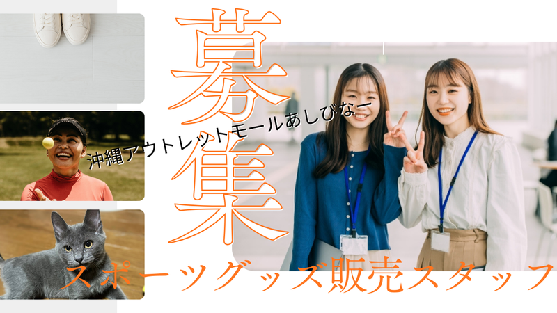 仕事内容 沖縄アウトレットモール あしびなー✨ スポーツブランドショップ NEW OPEN! オープニングスタッフ募集 【営業期間】 2026年1月10日頃~ 約6カ月間の短期バイト! ✅高時給×未経験OK ✅3月までの短期もOK ✅制服支給 ・接客販売 ・レジ対応 ・商品陳列 ・店舗清掃 ・開閉店作業 など \スポーツが好きな方大歓迎/ ゴルフブランドですが、未経験でも大丈夫 ブランドに詳しいスタッフがいるので、 わからない事は全力でサポートします! ✅自社で働くメリット ・お休み希望が出しやすい ・個人ノルマ無し ・働くと貯まる!自社のオリジナルポイント ・ピアス/ネイル/アクセサリーOK (華美すぎないもの) ・交通費全額支給 ・車通勤OK ・遅番のみOK ・平日のみOK ・土日祝のみOK