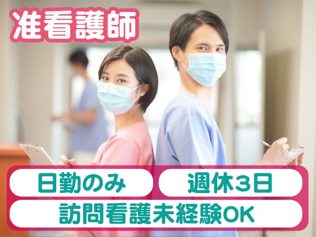 仕事内容 \あなたのスキルを活かしませんか?/ 地域貢献、事業の拡大に伴い 新しい仲間を募集しています! 訪問看護ステーションで准看護師の 資格をお持ちの方を募集いたします。 精神科訪問看護師として、ご利用者様 一人ひとりに寄り添い、住み慣れた地域 での療養生活を温かくサポートする、 やりがいのあるお仕事です。 新しいチームを一緒に作り上げていきませんか? 【お仕事内容】 訪問看護師としてご利用者様の心の健康と 生活を支える多様な業務をお任せいたします。 病状評価とモニタリング ご利用者様の精神的な状態を丁寧に観察し、 心の変化をモニタリングします。 お薬の管理とアドバイス お薬の管理、副作用の確認、服薬に関する 丁寧なアドバイスを行います。 ご家族へのサポート ご利用者様の状況や治療計画について 分かりやすくご説明し、ご家族の方々へのケアと サポートも行います。 地域との連携 ご利用者様が地域の様々なサポートを 安心して活用できるよう、架け橋となる 役割を担います。 予防と健康促進 生活習慣の見直しや健康増進活動を サポートし、再発予防に繋げます。 訪問時にはお薬や健康状態のチェックだけでなく 世間話などを通して心の繋がりを大切にした ケアを提供します。 1日の訪問件数は7件程度で ステーションを拠点に社用車で 訪問していただきます。 【1日の流れ(例)】 ・9:00 ステーションに出勤、またはご自宅から訪問先へ直行 専用端末で訪問スケジュールを確認します。 ・午前:3~4件のご利用者様を訪問。 ・お昼休憩(1時間) ・午後:4~5件のご利用者様を訪問。 訪問記録の作成や報告業務なども行います。 ・18:00 ステーションで退勤、またはご自宅へ直帰。 【働きやすさのポイント】 安心の正社員採用 日勤のみで、夜勤はありません! オンコールなしの精神科訪問看護ステーション ですので、規則正しい生活リズムを保てます。 嬉しい日曜定休で、ご家族やご友人との 時間・趣味の時間などプライベートも大切にできます。 充実の福利厚生 各種社会保険完備・交通費支給・制服貸与 などを予定しています。 働きやすい環境 スタッフ同士のコミュニケーションを大切にし、 風通しの良い職場環境を目指しています。 【未経験の方も大歓迎!充実の研修制度で安心スタート】 精神科のご経験がない方や訪問看護未経験の方も ご安心ください!先輩スタッフが丁寧に同行サポート しますので、安心して業務をスタートできます。 充実したweb研修 を通して、必要なスキルを しっかりと身につけられます。 【採用担当からのメッセージ】 訪問看護師として准看護師の資格を活かし、 地域の方々の心の健康を支えるとても意義深いお仕事です。 ご利用者様とそのご家族に寄り添い、 安心して療養を続けられるようサポートすることで、 大きなやりがいを感じられるでしょう。 ご家庭やプライベートとの両立を考えている方、 新しい環境でチャレンジしたい方 温かい心と向上心をお持ちの方、ぜひご応募ください! 親子やご兄弟での就業実績も多数ございます! 皆様からのご応募を心よりお待ちしております!
