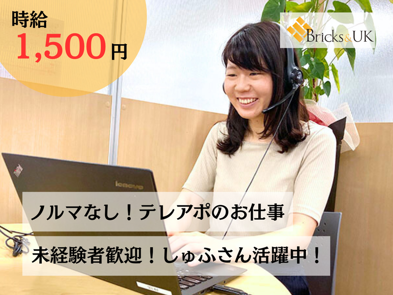 急募/ノルマなし/時給1,500円!/残業なし/完全土日祝休