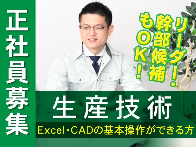 【伊勢崎市/正社員】生産技術/新規案件追加のため増員募集/土日休み・長期休暇有/年間休日117日