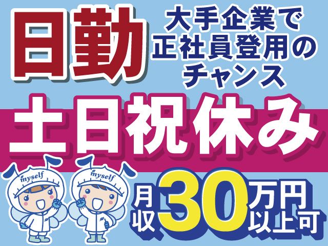 日勤・土日祝休み/社員登用あり/月収30万円可/週払い可