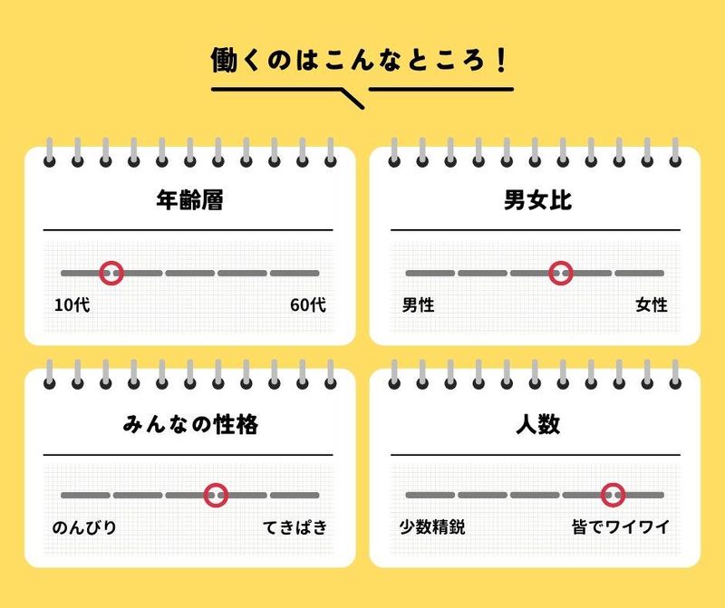 勤務時間詳細 7:00~23:00の間で1日4時間~OK ・週1日~勤務OK 「土日祝のみ」「平日のみ」 「夕方まで」「夕方から」 などシフト相談OK!
