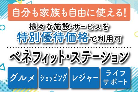 【保険制度】 雇用保険、労災保険、健康保険、厚生年金 待遇・福利厚生 【福利厚生】 ・社会保険完備 ・交通費全額支給 ・週払いOK(規定) ・有給休暇 ・制服貸与 ・食堂利用OK(お弁当1食550円) ・車通勤OK ・茶髪OK ・紹介キャンペーン ※ご紹介くださった方1名につき6万円進呈(規定) 【その他福利厚生】 ・定期健康診断 ・キャリアアップ支援制度 ・ストレスチェックの実施 ・子ども手当あり ・結婚、出産、入学祝い金あり ・退職金制度あり ※各々、社内規定に基づく ★トーコーで働くと利用できる福利厚生サービス「ベネフィット・ステーション」! グルメやレジャー、ショッピングだけでなく 育児や介護などライフイベントに関わるものまで、 【約140万件以上】の各施設・サービスを特別優待価格にてご利用いただけます。 スタッフさんはもちろん、ご家族の方もお好きなだけ利用できます。