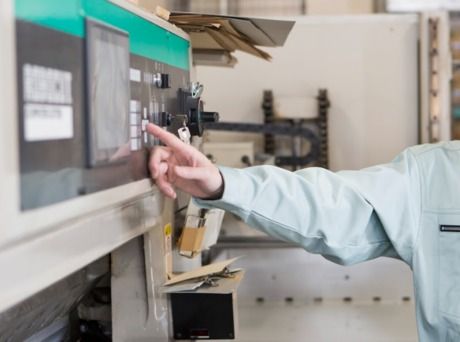 薬液投入してモニターのボタンを押す作業