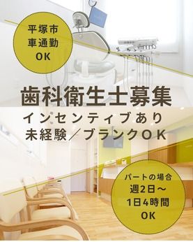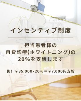 仕事内容 【お仕事内容】 【歯科衛生士業務】 1.診療補助 歯科医師の診療をサポートし、器具の準備や片付けを行う 診療中のアシスタント業務 2.歯周病の治療・検査 歯周病のスクリーニングと診断の補助 歯石除去やルートプレーニング 歯周ポケット検査 3.予防処置 フッ素塗布やシーラント PMTC/ブラッシング指導やデンタルフロスの使用方法指導 4.メインテナンス 定期的な口腔内検査とクリーニング 患者さんの継続的な口腔ケアの計画と実施 治療後のフォローアップと相談対応 【お仕事のポイント】 歯周病治療や予防歯科に力を入れている地域密着型の歯科医院です。 患者様お一人おひとりにじっくりと向き合う診療スタイルで、 定期メンテナンスや口腔ケアを丁寧に行っています。 経験の有無は問いません。未経験の方、ブランクがある方、 スキルに自信がない方も心配はいりません。 セミナー受講費などの費用を負担する制度を設け、 皆様にスキルを学んでいただける環境を整えています。 初心者からベテランまで、全てのスタッフが成長を続けられるよう全力でサポートしています。 【営業のおすすめポイント】 歯科衛生士としての経験が3年以上あり、ブランクがない方は時給が1700円~1900円で、 経験スキルを考慮の上決定します。さらに、インセンティブ制度を導入し 努力や成果がお給料にしっかりと反映される仕組みを整えています。 日々の業務における頑張りが報われる環境を提供することで、 モチベーションを高め、より良い職場づくりを目指しています。 医院見学や数日のお試し勤務もできますのでお仕事内容に不安がある方も、まずはお問い合わせください。