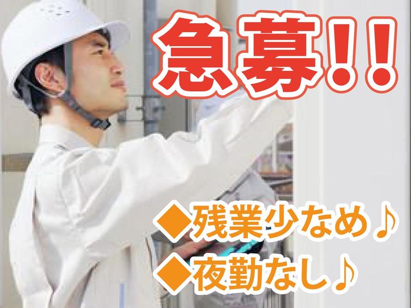 仕事内容 研究センター内の機械・電気・空調等の設備管理業務全般 <設備管理業務です> ☆経験者・有資格者歓迎! ☆2級ボイラー技士及び第二種電気工事士以上の資格必須 最初は経験のある方でも丁寧に教えますので 分からない事は何でも相談できる環境です♪ ☆20代~50代の男性スタッフ活躍中! ☆長期での活躍歓迎! 【具体的なお仕事内容】 東京都東村山市にある大手研究センター内にて、以下の設備管理業務をお任せします。 ●電気・機械・空調設備などの点検・保守・日常管理 ●中央監視システムによる設備の確認 ●簡単な営繕・修理(ライト交換など) ●外部業者とのやりとり・立ち合い ●日報・報告書作成(PC入力あり) 現場はチーム制で安心! 即戦力の方はもちろん、ブランクがあっても同行研修やOJTでしっかりサポートします。 【このお仕事のポイント】 ◎土日休み・残業少なめ ◎研究センター内の設備を安定運用! ◎資格を活かせる!第二種電気工事士・ボイラー技士必須 ◎入社祝い金10万円支給(規定あり) 【募集の特徴】 設備スタッフ/設備員/保守/管理/経験者歓迎/無資格可/ブランクOK/有資格者優遇/制服貸与/交通費支給/年齢不問/20代・30代・40代・50代活躍中/ <担当より一言> 是非設備のお仕事を弊社でやりませんか? 人柄やヤル気を重視して採用をしていきたいと思っています。 沢山の方とお会いできることを楽しみにしています。