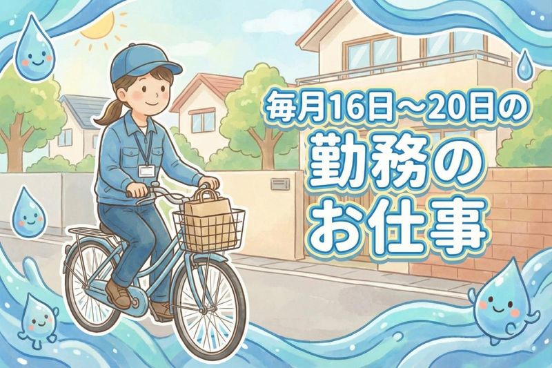 仕事内容 ★月5日で4〜5万円の副収入! ★接客・電話なしの完全個人作業 ★移動は自転車やバイクでスイスイ ★難しい知識は一切不要! 【仕事内容】 水道メーターの数字をチェックし 専用端末(ハンディ)に入力。 出てきた紙をポストに入れるだけ! ★1件あたり1〜3分程の作業 ★毎月16~20日の勤務 ★わからないことは事務所に確認電話OK ★巡回:小泉町・稗田町・八条町・宮堂町