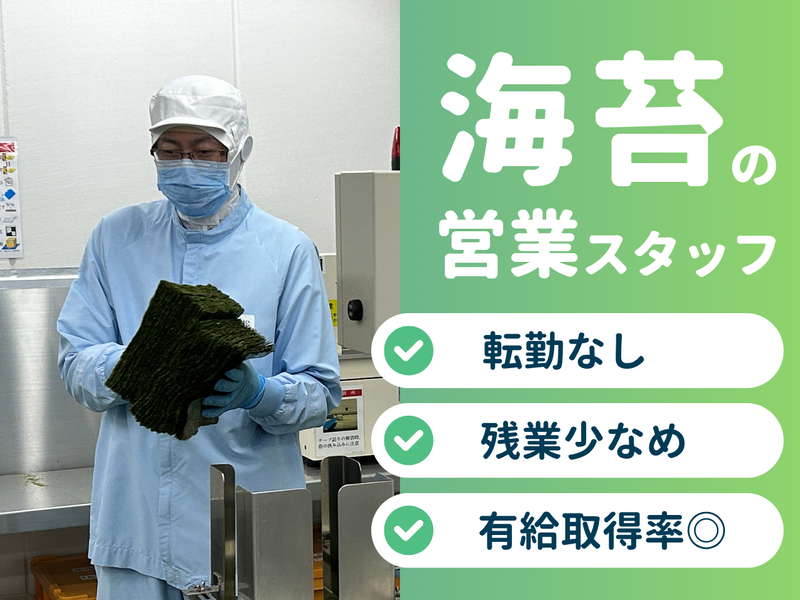 仕事内容 ・―・・―・・―・・―・・―・・―・ *従業員を大切にする会社です* ◆有給取得率◎お休みしやすい環境◆ ◆残業ナシ! 年間0時間がほとんど◆ ・―・・―・・―・・―・・―・・―・ ―誰もが知っている、あのスナック菓子、 自分も子供も大好きだったのが志望動機― 某スナック菓子の人気フレーバー、 手土産で人気のお煎餅、 ふりかけ、和風パスタソースの付属の刻み海苔… 当社で作っているのは、 そんな商品たちに使われる海苔や青のり、エビ。 海苔をはじめ、乾物を様々な商品に合わせて加工し 大手製菓、米菓メーカー等へ送り出しています。 あなたにお願いしたいのは 全国各地のスナック菓子や食品メーカーを巡って、 今年の海苔、青のりの相場や 生育状況などをお伝えすることです。 【具体的なお仕事内容】 お客様である食品メーカーを訪問し、 今年の海苔の状況をお伝えするルート営業をお願いします。 訪問件数は1日4~5件。 地方へ向かう場合は泊りになることもありますが、 土日は必ず帰って来られるのでご安心くださいね。 ★イレギュラーが少なく、残業はほとんどありません。 ★入社1年後以降はジョブチェンジも可能! お気軽にご相談ください。 ★転勤なし!有給取得率も高くプライベートとの両立も可能◎ 【入社後の流れ】 最初の1~2年は、工場で加工作業に携わりながら、 商品について勉強する期間です。 まだ知らない海苔の奥深さを、実地で学ぶことができますよ! 海苔の状況の変化は、その海苔を用いる食品の味に直結します。 例えば、スナック菓子の「のりしお味」に採用される海苔。 当たり前に楽しんでいる味に、実は前年とは違う海苔が使われている、 なんてこともあるんです。 海苔の収穫量、色味、風合いによって その年の相場が大きく左右されること、 グレードもピンキリで、加工方法で風味も大きく変わること… 海苔を知れば知るほど、食の風景が変わって見えるはずです♪ 【当社について】 海苔の仕入れは特定の指定業者のみが行うため、新規参入が難しい業界。 その中で石川商店は創業100年を超える老舗企業です。 明治41年からこの地に根差し 大手メーカーからも安定した取引をいただいています。