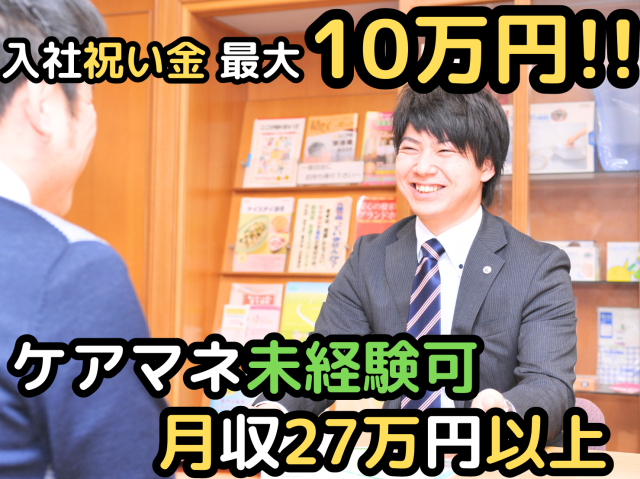 資格・経験 介護支援専門員(ケアマネジャー)必須 未経験者歓迎! 経験の浅い方・ブランクある方OK! ※経験者は優遇します
