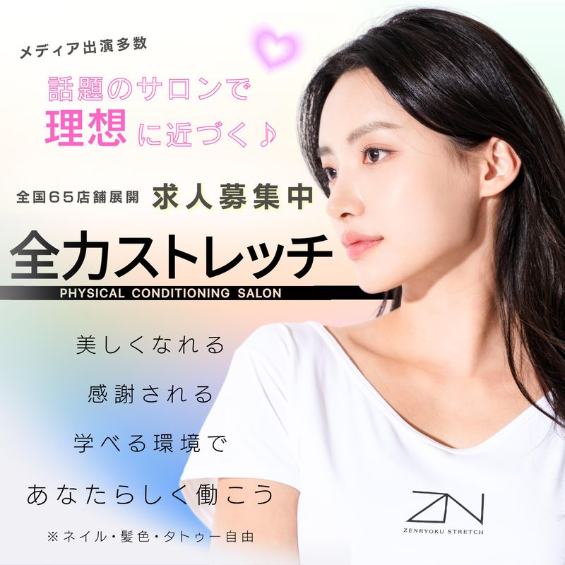 求めている人材 人と話すのが好きで、コミュニケーション力を活かしたい方、自分の努力でしっかり稼ぎたい方、 大歓迎!仲間と励まし合いながら、成長意欲を持って働きたいあなたにピッタリな職場です! ◆ 未経験者大歓迎!「丁寧な研修制度があるので安心してチャレンジできます」 ◎ 未経験でも1から学ぶ意欲がある方 ◎ ご安心ください!あなたのチャレンジ応援します! ◆ スキルアップ・成長意欲のある方! ◎ とにかくたくさん稼ぎたい方! ◎ 評価がしっかり給料に反映する稼げる仕事を求めている方! ◎ 資格を取得してスキルを身につけたい方 ◎ 専門的なスキルがなく将来に不安を感じている方 ◎ 身体のことを学びたい・ストレッチ技術を覚えたい方 ◎ 自分の努力でしっかり稼ぎたい方 ◎ スキルアップや新しい技術に挑戦したい方 ◎ 成長意欲があり、現状に満足せず努力を続けられる方 ◆ こんなあなたを待っています! ◎ 人と話すことが好き ◎ 『友達の相談に乗ることが多い』『人にアドバイスする事が好き』等、コミュニケーションをとることが好き ◎ 人の悩みや辛さをなんとかしてあげたい、人の為に働きたいという想いの方 ◎ 明るく元気で素直な対応ができる方 ◎ 仲間と協力して励まし合いながら働きたい方