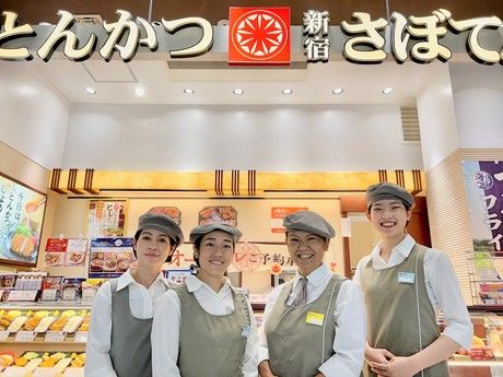 仕事内容 <未経験の方も大歓迎!さぼてんなら安心してお仕事が始められます◎> とんかつ新宿さぼてんは創業55年を迎えたとんかつ専門店。 「三元麦豚ロースかつ」や「特撰やわらかヒレかつ」を始めとした お客様に長年愛されている商品を多数揃えています。 接客・販売・調理が未経験の方も 先輩の優しいフォローや分かりやすい研修が有るので安心◎ ■接客・調理どちらの仕事もお願いしています <「とんかつ新宿さぼてん」の接客のお仕事内容はこちら!> お惣菜・お弁当、季節限定メニュー等のお勧め、注文の承り、レジなどの接客をお願いします。 初バイトの学生さんからお仕事が久しぶりの主婦(夫)さん、販売・飲食業界未経験の方も歓迎です! お仕事は丁寧にお教えします♪先輩スタッフや店長は優しい人ばかりで相談しやすい環境で安心です◎ <あなたらしい働き方でOK!正社員登用制度あり◎> ▼シフト相談OK →学校帰りに/家事や育児の合間に/掛け持ちでetc. 予定に合わせて働けます☆ ▼正社員登用制度あり バイト・パートから正社員になることも出来ますよ。 ・フリーターを卒業したい! ・安定企業に腰を落ち着けたい! ・キャリアUP出来る環境で働きたい! 皆さん大歓迎◎さぼてんならチャンスが有ります♪ <昇給制度・役職手当有りで頑張りはお給料にしっかり反映◎> ▼昇給 あなたの頑張りは給与にしっかり反映します★ ▼役職手当 トレーナー・リーダーになったら 時給に+50円~100円の役職手当が付きます。 とんかつ新宿さぼてんでは年齢や性別に関わらず 多くのトレーナーさんやリーダーさんが活躍中です♪ <とんかつ新宿さぼてんはこんなお店です♪> ▼創業55年を迎えたデリカッセン(持ち帰り専門店)です。 「人に喜ばれてこそ 会社は発展する」の社是の基 一層お客様に喜んで頂く事にこだわっています。 長年愛され続けている定番商品から 新たな定番商品の、生ハムポークを使用したとろける絶品ロースかつの「Sabo RED」まで 幅広い品揃えでお客様をお迎えしています。
