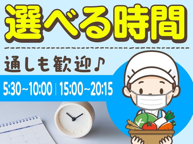 勤務時間詳細 ✨選べる2つの勤務時間帯✨ ① 5:30~10:00(実働4h) ②15:00~20:15(実働5h) ①②からお好きなお時間を選べます! ★週2日~ok ★フルタイムで働きたい方も応相談! ★土日も働ける方、ご協力お願いします!! ★「土日、全部でなければ大丈夫です」もちろん大歓迎です。