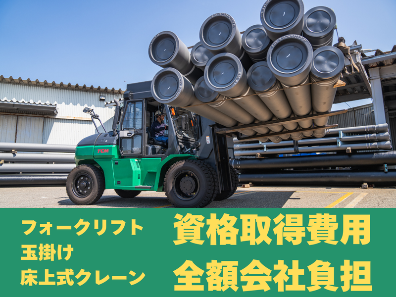 仕事内容 \\\ ✨働きやすさのポイント✨ ///  ̄ ̄V ̄ ̄ ̄ ̄ ̄ ̄ ̄ ̄ ̄ ̄ ̄ ̄ ̄ ̄ ̄ ̄ ⭐年間休日:126日(会社カレンダー121日+計画的付与有給5日) ⭐休み:週休2日制(原則 土日祝) ※全体会議のため年3回土曜出勤あり ⭐資格支援:フォークリフト/玉掛け/床上操作式クレーンなど費用は会社が全額負担 ⭐荷役:クレーン・リフト中心で手作業は少なめ/チーム作業で安全・安心 ⭐賞与:年2回(年間30~40万円 目安)/昇給あり(半期ごと査定) ⭐経験:直近2年間に入社した方のうち、70%が運送業未経験です。全くの未経験からでも安心してスタートできます。 <<会社について>> ・・・・・・・・・・・・・・・・・・・・・・・・・・・・・・・・・・*・・・ 北陸エリアで、鋼材・木材・建設資材・水道管 などの製品に特化した物流サービスを展開。 異業種からの未経験入社が多数活躍中。 元・飲食/建設/製造/事務などの出身者が、 チーム作業と資格支援(費用全額負担)で着実にスキルを習得。 フォークリフト→玉掛け→クレーンと段階的に できることを増やしています。 \\✨SNSで会社の雰囲気をチェック//  ̄ ̄V ̄ ̄ ̄ ̄ ̄ ̄ ̄ ̄ ̄ ̄ ̄ ̄ ̄ ̄ ̄ ̄ 当社の雰囲気がよくわかる 動画も公開中です♪ TikTokやYouTubeで 「あきら社長とゆかいな仲間たち」 を検索してみてください! ~震災を超えて~ 「新人ドライバーの挑戦と決意」 https://youtu.be/o6CrmZ9w2hM?si=pOlLONleysmSJS6U <<仕事内容>> ・・・・・・・・・・・・・・・・・・・・・・・・・・・・・・・・・・*・・・ 物流センター(構内)での荷受け・保管・出荷準備・積み込み補助などを担当します。 ・対象品目:鋼材、木材、建設資材、水道管 など ・主な業務:荷受け(検品/伝票照合)→保管(ロケ管理)→ピッキング→出荷準備 ・荷役方法:フォークリフト/クレーン中心(手作業は原則少なめ) ・メンテナンス:フォークリフトやクレーンの簡単なメンテナンスもしていただきます。 ・体制:チーム制で声かけ・指差呼称・復唱を徹底(KYT・5Sあり) <1日の流れ(例)> 08:00 出社/点呼・安全確認・当日スケジュール共有 08:10 入荷対応・仕分け(チームでクレーン/リフト使用) 10:00 在庫整理・ロケーション整備・片付け 12:00 休憩 13:00 出荷準備(ピッキング/積付け段取り/ラベル・伝票確認) 17:00 最終確認・場内整備 17:30 退社 ※早出の場合は、その分早めに終業となります。 ※勤務時間については、面接の際にご相談いただけます。 ――――――――――――――――――― <<教育・サポート体制>> ・・・・・・・・・・・・・・・・・・・・・・・・・・・・・・・・・・*・・・ ✅免許取得は会社が全力サポート ――――――――――――――――――― 最初は免許・資格が無くても大丈夫。 フォークリフト、玉掛け、床上クレーンなど、 各種免許取得費用は 会社が全額負担します。 ✅丁寧な指導体制 ――――――――――――――――――― 製品の固定方法や配送の仕方は、 先輩が丁寧にレクチャーします。 ✅デジタルツールの活用 ――――――――――――――――――― 仕事用スマートフォンを貸与し、 グループチャットでスムーズに業務連絡。 安全に関する動画教育システムや 安全研修も充実しています。 ✨社員インタビュー✨  ̄ ̄V ̄ ̄ ̄ ̄ ̄ ̄ ̄ ̄ ̄ ̄ ̄ ̄ ̄ ̄ ̄ ̄ ⭐定着率バツグン ――――――――――――――――――― 社員定着率90%! チームワークが本当にいい会社だな と思います。 仕事以外の話もよくしますし、 自分の仕事でなくても手伝ってくれる人が 多いので、本当に助かっています。 前職もドライバーをしていましたが、 一人で仕事をすることが多く、 この会社の「助け合う雰囲気」が、 とても新鮮でした。 ⭐資格取得支援制度 ――――――――――――――――――― 働きやすさで言えば、資格取得支援制度が あること。入社後大型免許をはじめ、 フォークリフト、クレーン、玉掛免許を 取得しました。 ⭐休暇制度も充実 ――――――――――――――――――― 有給も取りやすい会社で、 趣味の旅行に出かけています。 最近では岐阜県の温泉に行ってきました! ──────────────────── ■ よくある質問(FAQ) Q. 未経験でも大丈夫? A. はい。入社後にフォークリフト等を会社負担で取得できます。基礎から丁寧に教えます。 Q. 力仕事は多い? A. クレーン・リフト中心で、手作業は原則少なめです。 Q. どんな作業が多い? A. 入荷検品・ロケ管理・ピッキング・出荷準備が中心です。 Q. キャリアアップは? A. フォークリフト→玉掛け→クレーン→リーダー職へと段階的に担当拡大が可能です。
