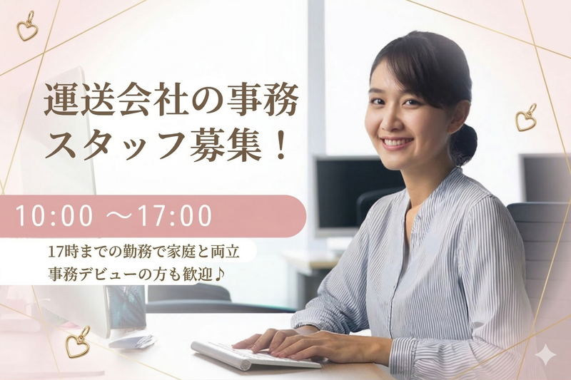 仕事内容 ◤ ̄ ̄ ̄ ̄ ̄ ̄ ̄ ̄ ̄ ̄ ̄ ̄ ̄ ̄ ̄ ̄ ̄ ̄◥ 家事・育児と両立したい方へ―― 土日祝休み×17時退勤の事務ワーク ◣__________________◢ 落ち着いた雰囲気の運送会社オフィスで、 事務スタッフを募集します! 女性スタッフ多数在籍&和やかな職場です。 ⭐土日祝休みで予定が立てやすい ⭐10時スタートで朝は自分時間確保◎ ⭐未経験・ブランク明けの方も歓迎 ⭐髪色自由!自分らしく働ける♪ ⭐人間関係が良く、長く続けやすい 【 お仕事内容 】 ・電話/メール対応 ・来客対応 ・データ入力、資料作成 ・伝票の準備、書類整理 …など 特別なスキルは不要の、 シンプルな事務作業です♪ 先輩が丁寧にフォローします! 【 未経験者に人気の理由 】 ✅難しいExcel関数などは一切なし ✅一つずつ教えてもらえる安心体制 ✅事務デビューのスタッフも多数在籍 ✅久しぶりのお仕事復帰にも最適 ✅落ち着いて作業できる環境 / 他にはない、 こんな癒しも…♡ \ 事務所前には、人懐っこい ワンちゃんがいます∪・ω・∪ 出社時や休憩中に、 癒されるとスタッフからも好評です♪ 「頑張ってくれる人には全力で返す!」 うちってそんな会社です◎ #頑張る姿勢を全力でサポート #社長と社員の距離が近い #入社後の定着率が高い 📍社長ってこんな方です 社長は28歳の時に この会社の代表になりました。 若い時に色々な経験があったからこそ、 未経験で挑戦する人を応援したい、 経験者には戦力になる分形で返したい、 そんな思いを強く持って 社員の皆と向き合っています◎