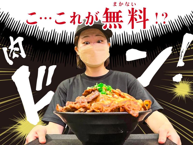 仕事内容 ―――――――――― ◆選べる時間枠◆ ―――――――――― 【A】9:30~14:00 【B】10:00~15:00 【C】11:30~17:00 【D】18:00~22:00 【E】21:00~24:30 【A】【B】【C】 の時間帯は99%以上採用します!! ・・・・・・・・・・・・・・・ \\働きやすさのポイント!// ✅嬉しい週払いOK! ✅職場見学もOKで不安なくスタート ✅週3日~でOK ✅勤務日数に応じて時給UP ✅スタッフに人気!無料のまかないあり - まずは簡単な作業からはじめますので 未経験の方も安心してくださいね! 「ホール」「キッチン」 どちらか選んでもOKです♪ 【ホール】 接客・配膳 など 基本的には食券で対応なので レジ業務はナシ! 覚えることも少なく、 すぐに慣れていただけます◎ 【キッチン】 肉丼の調理・調理補助 など 秘伝の味と技もマスター?! 少しずつできればOKです◎ ★☆飲食店はじめて!という先輩も多数☆★ 今活躍する先輩たちのほとんどが 未経験からはじめています。 イチから丁寧にお教えていきますから 遠慮なく何でも質問してくださいね。 ★☆応募理由は何でもOK☆★ ・飲食店で働きたかった! ・楽しく働けそう! ・家から通いやすい! ・仲間ができそう! ・仕事が簡単そう! ・お肉が好きだから! 人柄とやる気重視なので 緊張せずに面接に来てくださいね♪ ★☆おいしい無料のまかない☆★ 普段のメニュー内のまかないも 超絶品なのですが… 2と9のつく日は、スタッフの リクエストを聞いた上での オリジナルメニュー! 料理好きの先輩がつくってくれる 超超超おいしいまかないです♪ - 「肉丼で世界をハッピーに♪」を、クレドに 掲げ企業活動を行っております☆肉丼を通 じて多くの人を幸せにしていきましょう☆ - 【正社員でも勤務可能】 月給27万5700円~35万円 ※固定残業代6万7500円・45時間分を含む 超過分は別途支給。 ※新人教育・管理業務・発注業務なども担当 ※決算賞与あり - ★将来、新店の計画あり! ポジションも豊富です!