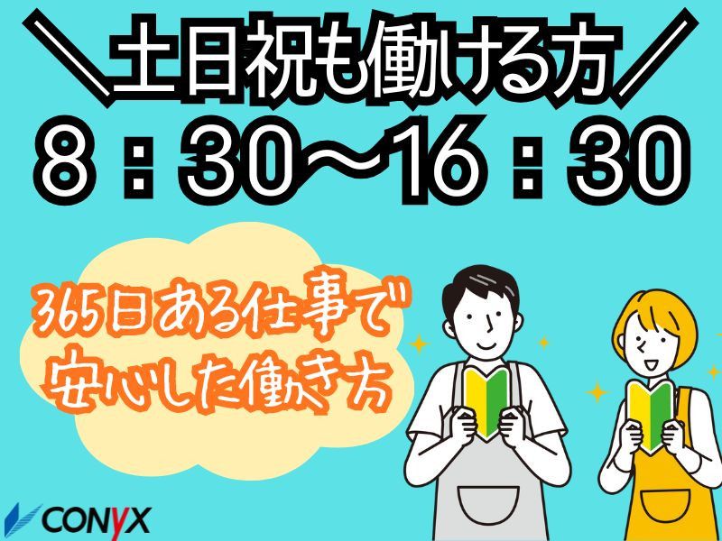 平日・土日・祝日、すべて勤務できる方。【勤務時間】8:30~16:30。週4日~✅2025年11月オープン!オープニングスタッフ!