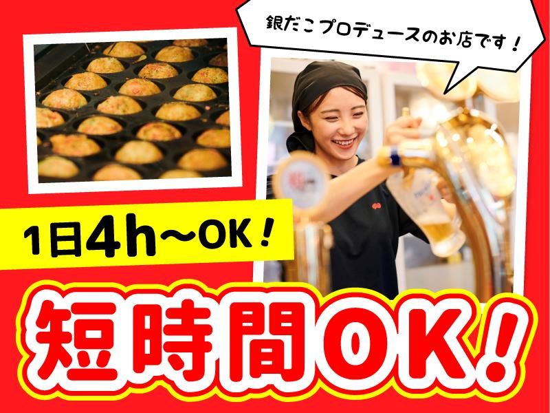 仕事内容 大人気たこ焼き店 築地銀だこがプロデュース★ アットホームなハイボール居酒屋で 一緒に働きませんか! ・~・~・~・~・~・~・~・~・~ ◆シフト自由!週1日~、1日3h~OK♪ ◆未経験OK!メニュー少なめで覚えやすい ・~・~・~・~・~・~・~・~・~ 【1】ホール業務 ―――――――― ・お客様のご案内 ・オーダー受け ・料理の提供 ・レジ など 【2】キッチン業務 ――――――――― ・簡単な調理補助 ・盛り付け など まずはできることから 少しずつ始めていきますので ご安心ください! ・~・~・~・~・~・~・~・~ 席数は30席未満なので 「大きなお店だとちょっと緊張しそう…」 「席数が多いと対応が大変かも…」 といった心配は一切必要ありません! ・~・~・~・~・~・~・~・~ \ 安心ポイント☆ / ―――――――――― ◆シフトの融通が利く プライベートや 学校・家事との両立もバッチリ! 平日だけ、土日だけ、短時間勤務など、 あなたのライフスタイルに 合わせて働けます♪ ◆未経験でも安心 先輩スタッフが丁寧に教えますので、 未経験の方でも安心してスタートできます♪ ★希望者は…★ たこ焼きを焼く作業にも挑戦OK! 自動たこ焼き器を導入しているので、 特別なスキルがなくても チャレンジできますよ。 ◆髪型・髪色自由 自分らしく働けます♪ ◆昇給あり 頑張りはしっかり評価します! ◆正社員登用制度あり ゆくゆくは社員として活躍したい方も大歓迎!