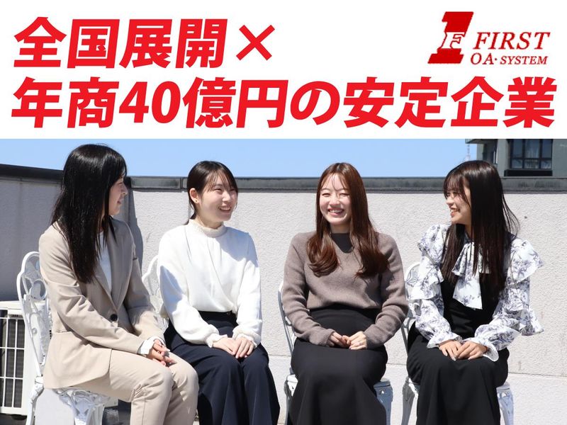 仕事内容 <“売る”より“支える”営業です✨> あなたにお任せするのは、 販売代理店(パートナー企業)をサポートする法人営業。 テレアポや飛び込みで新規開拓をするのではなく、 すでにお取引のある企業様と信頼関係を築きながら、 「どうすればもっと売れるか?」を一緒に考える仕事です。 <具体的には…> ・代理店への商品・サービスのご提案 ・販促企画や売り方のアドバイス ・価格表や営業ツールの提供 ・売上データの分析・改善提案 ・新しいパートナー企業のご紹介対応(反響中心) <この仕事のポイント✨> ✅ “個人ノルマ”に追われない → チームで目標を追うスタイル ✅ 関係構築がメインの営業 → 人と話すこと・信頼関係づくりが活かせます ✅ データ分析や提案力も身につく → 将来に役立つスキルが自然と身につきます <未経験でも安心スタート> 入社後は、商品知識や営業の進め方などを イチから丁寧にレクチャーします。 最初は先輩と一緒に進めていくので、 「営業は初めて」という方もご安心ください◎ ******************** <株式会社ファーストってどんな会社?> 複合機・防犯カメラなどのOA機器から、 空調・LED照明といった設備機器まで扱う総合商社です。 従業員は130名(2026年3月現在)。 東京・名古屋・大阪・福岡に拠点を展開し、 全国規模で事業を拡大しています。 2024年4月期の年商は43億円を突破。 主力のOA機器分野では全国トップレベルの売上を誇り、 代理店ネットワークを活かした強力な販売体制が強みです。 また、大手商社と連携した照明事業や、 卓球スクールを運営するスポーツ事業など、 多角的なビジネスも展開しています。