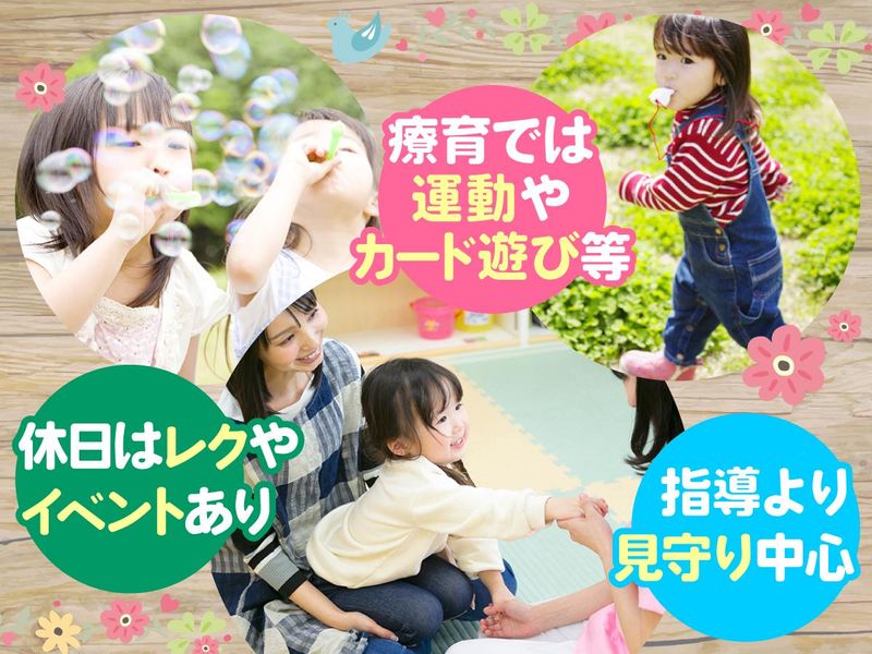 仕事内容 ✿その資格、ここでも活かせます  ̄ ̄ ̄ ̄ ̄ ̄ ̄ ̄ ̄ ̄ ̄ ̄ ̄ ̄ ̄ ̄ 保育士・教員・介護福祉士・ 児童指導員任用資格 今までとは違う環境でも、 あなたの経験はしっかり活きます。 「もう一度、子どもと関わる仕事がしたい」 「フルタイムは難しいけど現場に戻りたい」 そんな想いで再スタートした方が活躍中です ✿ブランクがあっても、大丈夫な理由  ̄ ̄ ̄ ̄ ̄ ̄ ̄ ̄ ̄ ̄ ̄ ̄ ̄ ̄ ̄ ̄ ̄ ̄ 放課後等デイサービスは、 未就学児~高校生までの 発達に特性のあるお子さまが通う場所。 1日10名前後の少人数制で、 一人ひとりと丁寧に関われる環境です。 子育てで身についた ・声のかけ方 ・待つ姿勢 ・気持ちの切り替えサポート これらが、現場でそのまま役立ちます◎ ✿お任せする療育内容  ̄ ̄ ̄ ̄ ̄ ̄ ̄ ̄ ̄ ̄ ̄ ̄ 「指導」よりも、一緒に楽しむことが基本。 ♪運動あそび ・ボール/風船あそび ・マット運動、バランス遊び ・音楽に合わせたダンス ✍ことば・コミュニケーション ・カード遊び(色・形・動物など) ・絵本の読み聞かせ ・会話のキャッチボール ♥日常生活・気持ちのサポート ・身支度や片付けの声かけ ・気持ちの切り替えフォロー ・簡単な活動記録入力 ※専門的な判断や計画作成は社員が対応 ※力仕事はほぼありません ✿1日の流れ  ̄ ̄ ̄ ̄ ̄ ̄ ̄ 「何をすればいいか分からない」 そんな不安が出ないよう、 役割と時間帯が明確です。 ►平日(例) 13:00 午後から出勤 ↓ お迎え・見守り ↓ おやつ・療育 ↓ 帰宅準備・お送り ↓ 19:00 退社 ►土日祝・長期休暇 9:00 出社・朝礼 ↓ お迎え・見守り ↓ イベントやレクリエーション中心 ↓ 昼食・療育・おやつの見守り ↓ 夕方にはお送り・清掃 ↓ 17:30頃には退社できる日がほとんど 「つきっきり」ではなく、 チームで支えるスタイルです。 ✿資格者だからこそのメリット  ̄ ̄ ̄ ̄ ̄ ̄ ̄ ̄ ̄ ̄ ̄ ̄ ̄ ̄ ✅ 資格・経験を活かせる ✅ ブランクOK/復帰組が多数 ✅ 土日祝は時給UPで効率よく ✅ 扶養内・短時間勤務OK ✅ 子どもと向き合う時間が中心 「忙しすぎる現場から離れたい」 そんな方にも選ばれています。 ✿あなたらしい働き方を  ̄ ̄ ̄ ̄ ̄ ̄ ̄ ̄ ̄ ̄ ̄ ̄ ☑ 平日だけ ☑ 週2日から ☑ 子どもが帰るまでの時間帯 ライフスタイルに合わせて 無理のない働き方が可能です。 子どもと関わる楽しさを、 もう一度。 今度は、あなたのペースで。