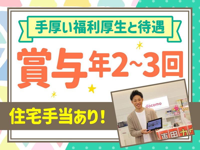 仕事内容 【アピールポイント】 *<未経験OK>人と話すことが好きな方に! *<研修あり>商品研修やOJT研修でサポート! *<月9~11日休み>希望休や連続休暇もOK! *<賞与年2~3回>昇給や住宅手当などあり! *<長期活躍>創業75年を迎える安定企業! 【仕事内容】 ドコモショップでの接客・販売業務をお任せします。 ~具体的には~ ・携帯、スマホの販売 ・プラン変更等の対応 ・サービスのご案内(クレジットカード、ドコモ電気など) その他、スマホ教室講師や出張販売担当業務もご担当いただく可能性もあります。 <入社後は> NTTドコモによる研修にて基礎知識を習得して頂けるほか、OJT研修にて先輩スタッフが仕事の流れなどを丁寧に指導しています。サポート体制が整っているので、未経験の方でも安心して始められます! <あなたの人柄で沢山のファンを。> お客様のライフスタイルやご不明点をお聞きしながら、商品やプランのご提案をしていただきます。「人と話すことが好き」そんな方ならスグに活躍できるはず。お客様に寄り添った接客で、あなたのファンをどんどん増やしていってくださいね! ~先輩インタビュー~ 仕事柄コミュニケーション上手の社員が多いので、社員同士でも思いやりや気遣いができる人が多く、仲がいい職場環境です。みんなで目標を決めて取り組み、達成できたときはやっぱり嬉しいですね。覚えることも多いですが、スマホの最新情報がいち早く入手できますよ! ///////////////////// 【ワークライフバランスを大切に】 残業は少なくお休みもしっかり取れるので、オンオフのメリハリを持って働けます。また賞与や昇給、住宅手当といった各種手当など長く安心の福利厚生も揃っています。 【創業75年の安定企業で長期活躍】 地域に愛され75年。地域に根ざした事業を展開、そして長い歴史があるからこそ、会社としての安定性も抜群です。「地元で働きたい」「地域の役に立ちたい」そんな方はぜひ一緒に働きませんか? 会社情報や仕事内容を動画でご紹介! https://www.kagasiya.co.jp/recruit/interview.html