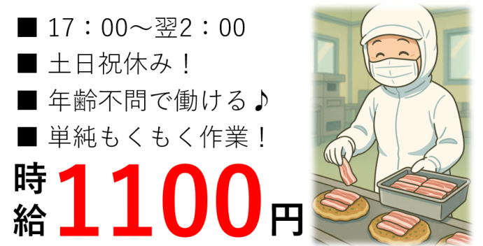 仕事内容 【保存食品の製造】 ◎保存食品を製造する工場内で 下記業務を行っていただきます! ・保存食品製造ラインで 具材トッピング作業 ・保存食品製造ラインで 製品の検品作業 ※基本的に立ち作業です! ※ラインでの作業になります! それほど早くない ラインになります! ○冷凍食品製造の食品工場内にて 具材のトッピングと 製品検品のお仕事! ○工場内で製造する製品に 具材をトッピングする作業と 具材が入っているか確認する作業を 担当して頂きます! ○資格も経験も一切必要ありません! 現場には未経験でスタートした 従業員が多数在籍して活躍中♪ 〇基本的には暦通りの土日祝休み! 長期連休ももちろん 完備されております! プライベートとの両立も可能です! / ・作業服貸与! ・男女ともに活躍中! \ ■■■ここもチェック!■■■ ◇未経験者歓迎 ◇有資格者歓迎 ◇フリーター歓迎 ◇U・Iターン歓迎 ◇ブランクOK ◇週4日以上OK ◇長期 ◇髪型・髪色自由 ◇残業月20時間以下 ◇友達と応募OK ◇家庭都合休OK ◇40代以上応募可 ◇50代以上応募可 ◇60代以上応募可 ◇年齢不問 ◇長期休暇あり ◇学歴不問 ■■■■■■■■■■■■■■
