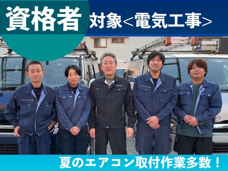 求めている人材 <必須> 要普通運転免許(AT限定可) ※中途採用歓迎! 未経験者歓迎! <活かせるスキル・覚えられる作業> ・電気工事士の資格取得 ・家電の設置(エアコンの取付・照明・アンテナ・ドアホン・温水便座ほか) ・電気工事業務(コンセントおよびスイッチ交換・電気配線工事) ・エアコンクリーニング