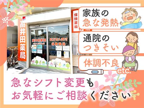 仕事内容 働きやすさ&メリットたくさん♪ ◇週1日~/1日2h~ ◇残業ほぼなし ◇家庭との両立OK ◇サポート体制バッチリ ◇主婦パートさん多数活躍中 ◇ブランク復帰応援 ◇扶養内勤務OK \ ★ここがポイント★ / シフトの融通が利くのでライフスタイルに 合わせた働き方ができます♪ 20~50代の主婦パートさんの中には ブランク復帰したスタッフも多数◎ みんな最初は不安な気持ちを抱えながら お仕事に復帰しているのでご安心を! 不安なことがあれば、周りのスタッフが しっかりサポートします♪ 調剤事務経験者はもちろん 医療事務経験者も活躍中☆彡 薬剤師さんと患者さまをつなぐ大切なお仕事 - ■仕事内容 - ・受付対応 ・処方せんの受け取り ・保険証・お薬手帳のお預かり ・新規の患者さまへ問診票の記入依頼 ・レセコンでの入力 ・処方せん内容や患者さま情報の入力 ・会計 ・保険請求(レセプト)業務 ・調剤補助 など 「患者さまに健康と安心をお届けする」 をモットーに優しく明るい対応をお願いします。 しっかり寄り添って、しっかりお話を行く 当たり前のことですが、スタッフ一同心がけています♪ 子育て世代や主婦(夫)パートさんに優しい職場 - ■シフト柔軟対応*家庭との両立も◎ - ・扶養内勤務OK!ムリなく働けます! ・ブランクあっても大丈夫!しっかりサポートします! ・結婚や出産後に退職した方も、経験を活かして活躍中 ・産休・育休の取得実績もあり! お子さまの体調不良や学校行事など、 急なシフト変更にも柔軟に対応◎ 20代~50代の主婦さんが多数いるので 困ったときはお互いに助けあえる環境です! みんなで協力しながら、楽しく働いていますよ♪ 気軽に質問できるのでブランクさんも安心 - ■資格や経験をが活かせます! - ・調剤or医療事務の資格や経験が活かせます ・接客業の経験がある方も活躍できます ・PCは基本操作ができればOK 久しぶりのお仕事復帰で不安な方も大丈夫! イチから丁寧にお教えしますし、 少しずつ思い出しながら慣れていってくれればOK♪ わからないことはいつでも何でも聞いて下さい! フォロー体制バツグンの環境を整えています◎