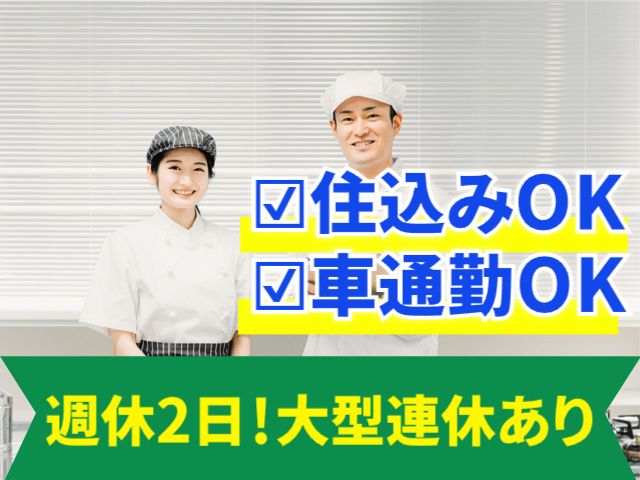 仕事内容 \未経験、無資格OK!調理スタッフ募集/ 4月末頃スタートのお仕事です。 男女スタッフ活躍中! <おすすめポイント> ・未経験OK ・マイカー通勤可 ・週休2日、大型連休あり ・住み込みOK ・資格手当あり ・正社員登用あり <お仕事内容> 宿舎の食堂内で、朝・昼・夜(三食)の食事提供をお願いします。 買い出し業務はなく調理のみに専念できます。 具体的には、 朝食:ご飯・味噌汁などの簡易メニュー 昼食:お弁当(朝食と並行して調理) 夕食:カレーや唐揚げなど、家庭料理中心 ※1回あたり5~10食程度 ※朝食と昼食(お弁当)調理後の夕食までの間は休憩・中抜けOK! <未経験OK> 調理業務未経験や無資格でもOK! 先輩スタッフがサポートするので安心です。 ご家庭での料理も活かせるので、主婦(夫)の方にもおすすめ! もちろん、経験者や調理師の資格がある方は即戦力としてご活躍いただけます! (調理師資格保持者は別途手当有) <充実の休日> 日曜と他1日の週休2日。(シフト制) その他年末年始・夏季・GWの大型連休もあります! また調理スケジュールが事前にわかるので予定も立てやすい! (大型連休の前日など調理が無い場合お休み) <資格手当あり> 調理資格者には別途手当を支給いたします。 <正社員登用制度あり> プライベートもしっかり確保でき、長く働きやすい環境です。 ゆくゆくは正社員登用も目指せるので長期的なキャリアも応援します! <こんな経験活かせます> ・調理補助の経験 ・学校、保育園での給食調理の経験 ・社員食堂などでの調理経験 ・ご家庭での日々の料理 ・調理師の資格 「美味しかった」「ありがとう」といった感謝の言葉がモチベーションになります。 やりがいを感じながら働けますよ! 充実の休日、シフト相談も可、安心して働ける環境です! 正社員、パート、アルバイトからの転職もOK! 在職中の方もお気軽にお問い合わせください。