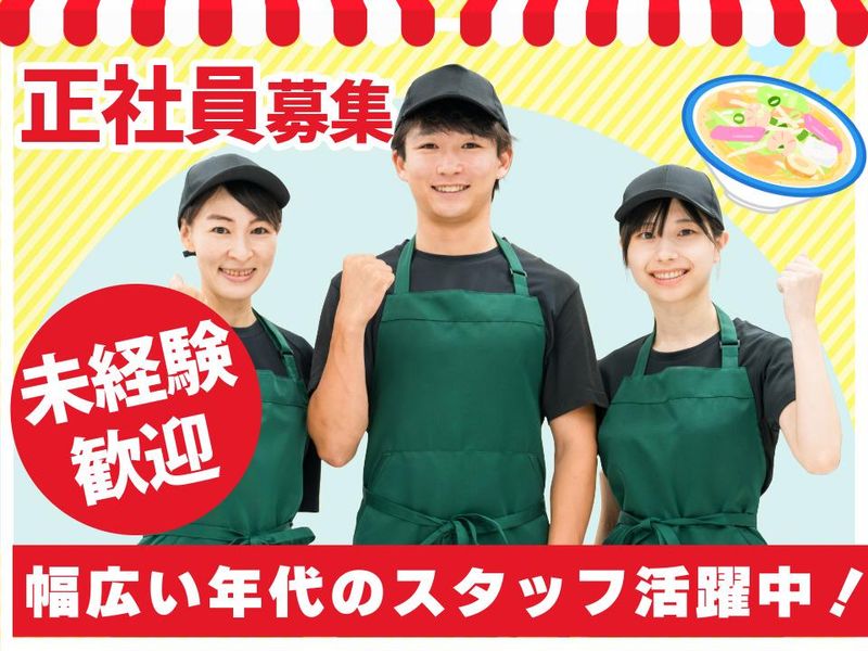 仕事内容 / 合言葉は「レッツ!ちゃんぽん!!」 店長候補や幹部候補も目指せる♪ \ ⭐未経験OK! ⭐昇給・昇格あり! ⭐絶品のまかないあり! <新着求人>正社員採用! 人気ちゃんぽん店の店舗スタッフ募集! <仕事内容> ・お客様のご案内 ・オーダー取り ・料理の提供 (ちゃんぽんや餃子など) ・キッチン業務 ゆくゆくは、 店長やマネージャーを目指すことも可能です! - まずは当店で大切にしている 明るい挨拶からスタート! ■ご来店されたお客様へ・・・ 「いらっしゃいませ♪」 ■料理を提供するお客様へ・・・ 「お待たせしました!」 ■お帰りのお客様へ・・・ 「ありがとうございました!」 - ✅未経験OK!人柄重視の採用! ─────────────────── 飲食業未経験やブランクのある方も応援!! イチから丁寧に教えるので、 続ければ自然とスキルが身につきます。 新人さんをしっかりサポートする体制が 整っているので安心! 幅広い年代の方が活躍しており、 お友達同士のご応募も大歓迎です! ✅頑張りは正当に評価♪ ─────────────────── 成果やスキルを評価しどんどん『昇給』♪ 店舗スタッフから店長候補や 幹部候補への『昇格』も夢じゃない! あなたの努力をしっかり評価◎ ✅美味しいまかない0円! ─────────────────── お財布にもやさしいまかない制度あり! 名物のちゃんぽんや 人気の餃子も無料で食べれちゃいます♪ 食費の節約にもピッタリです◎ ✅おしゃれ自由♪ ─────────────────── 髪型・髪色自由! 清潔感があればヒゲ、ネイル、ピアスもOK♪ 自分を変えることなく働ける職場です◎