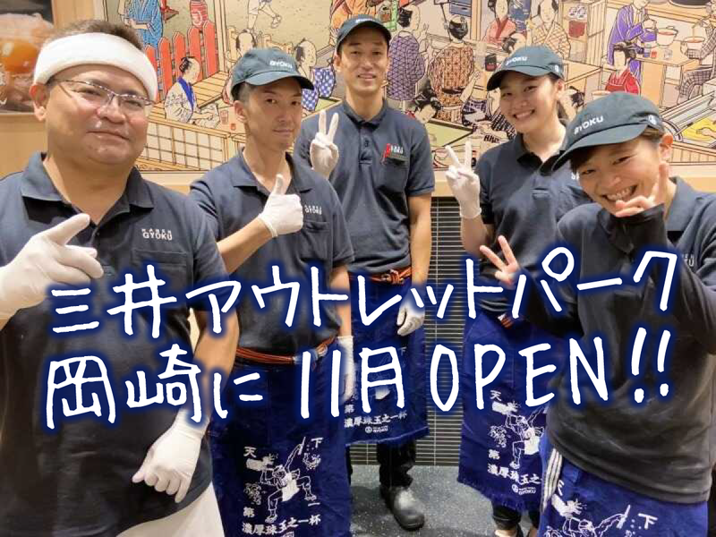 仕事内容 << 11月4日グランドオープン >> 新施設、三井アウトレットパーク岡崎内で 働くオープニングスタッフを大募集!! ー・ー・ー・ー・ー・ー・ー・ー・ー \オープン特別特典/ ■面接時、履歴書不要 ■面接時、ラーメンorつけ麺1食無料 ■特別時給1650円!! \当店のここがメリット/ ■格安まかない165円 ■土日祝特別時給+50円UP! ■シングル親特別時給+50円UP! ■友だち紹介制度5万円支給 ■週1日~3時間~2週毎のシフト ー・ー・ー・ー・ー・ー・ー・ー・ー [お仕事内容] ・ご注文の受付・レジ会計 ・トッピングの盛り付け ・お客様をブザーでお呼び出し後、 料理の受け渡し ▶フードコート内なので、 カウンター越しの接客が中心◎ ▶配膳やテーブルの片付けも無し! *** \履歴書不要でラクラク面接♪/ 【1分で完了!ネット応募】 ●「応募画面へ進む」をクリック ●必須項目を入力 ●応募完了! 応募後に希望面接日のメールをお送りします♪ …………………………………………… □電話応募 0564-83-5811 □応募⇒面接⇒採用