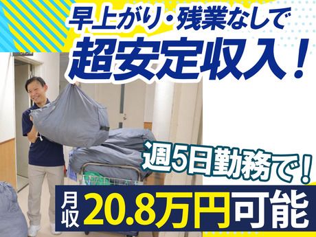 平日15時半退勤・週4日~OK!男性活躍中のリネン回収スタッフ募集!未経験歓迎!早上がり&残業なしで安定収入を実現!