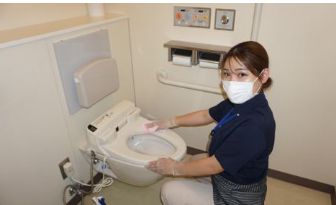 深くフリーズせずに体を動かす清掃スタッフ